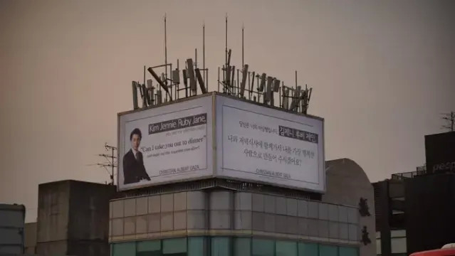 Iklan dari Christian Albert Gaza itu dipasang di lantai 5 gedung yang terletak di Yongsan-gu, Seoul dan diketahui seharga 1,5 juta peso atau 35 juta won. Di iklan tersebut tertulis, "Kim Jennie Ruby Jane, you are my ultimate crush. "Can I take you out to dinner" and make me the happiest man alive?"